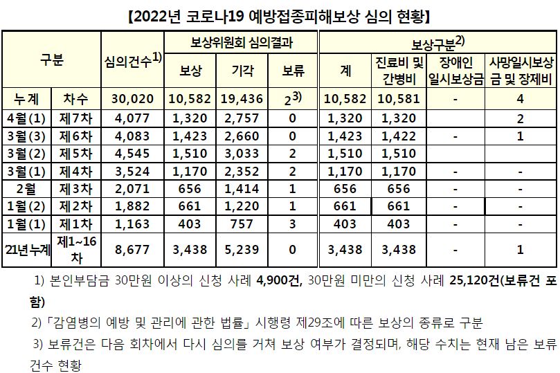 코로나19(2022.4.14) ’22년 제7차 코로나19 예방접종피해보상 전문위원회 결과 본문