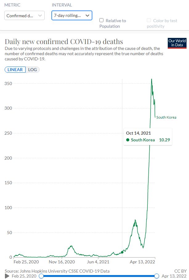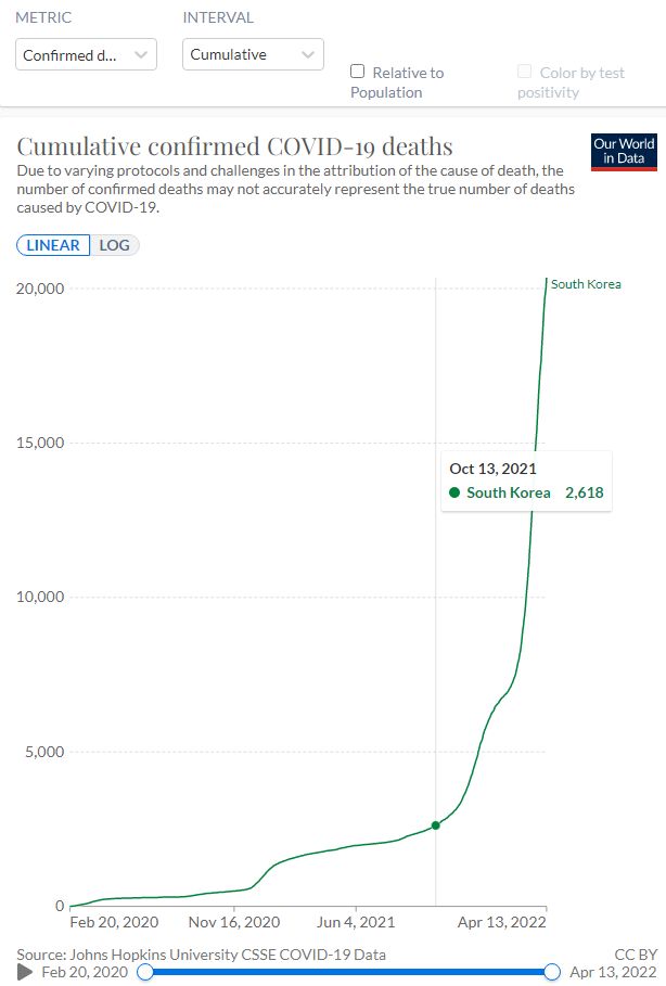 누적사망자그래프가 완만해지지 않은 이런 상황에서, 2년만의 거리두기 해제 자축이라..