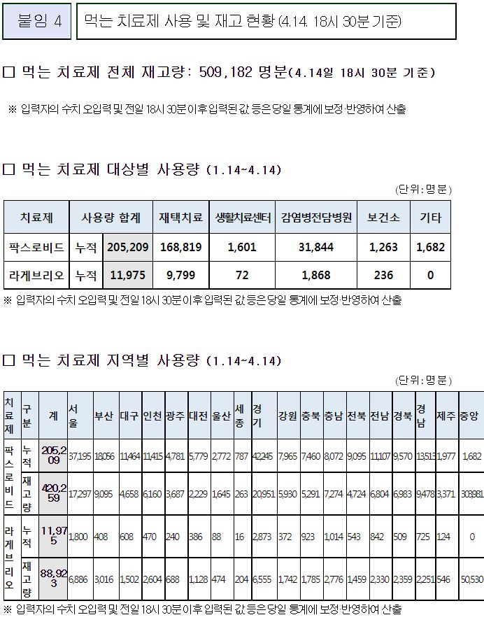 경구용 코로나치료제 사용 및 재고