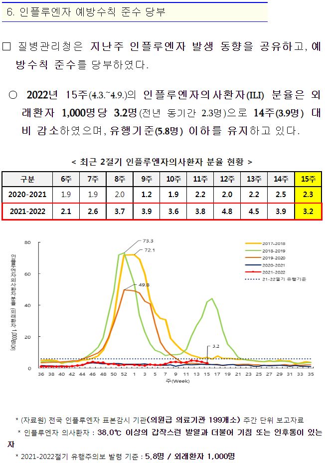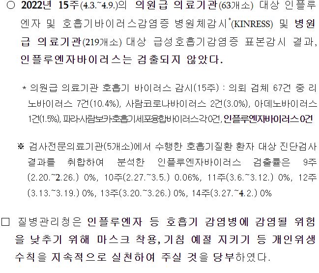 인플루엔자 상황. 유행안하고 겨울지났습니다.