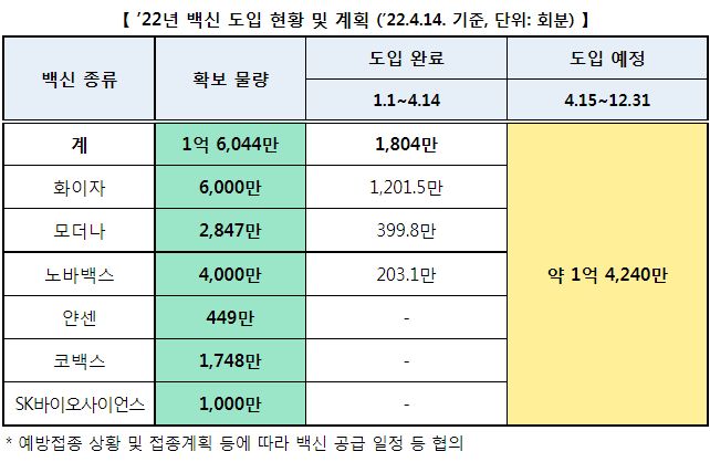 국내 백신 재고, 폐기, 계약량