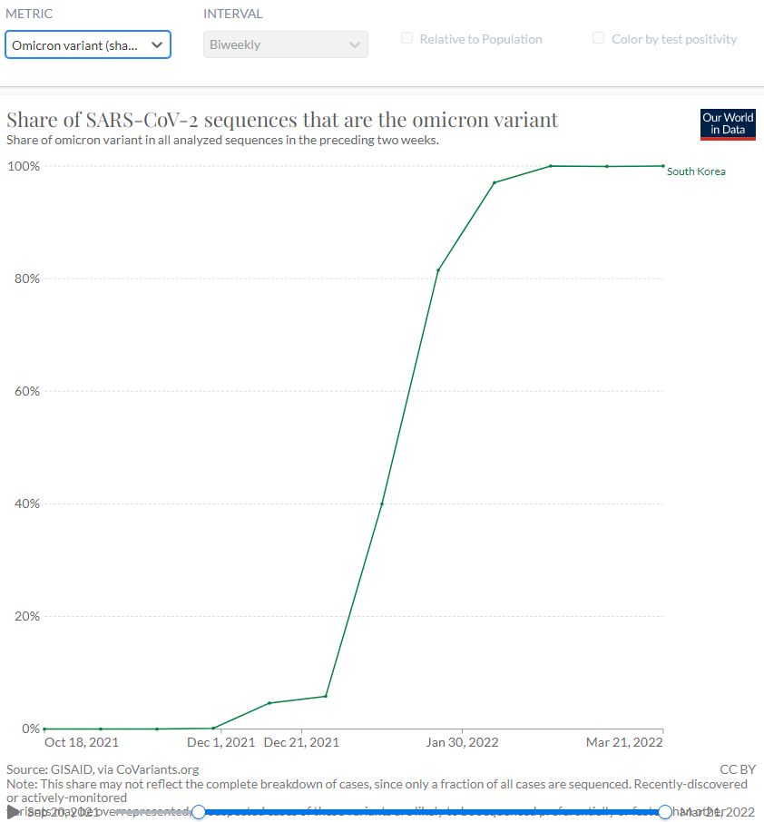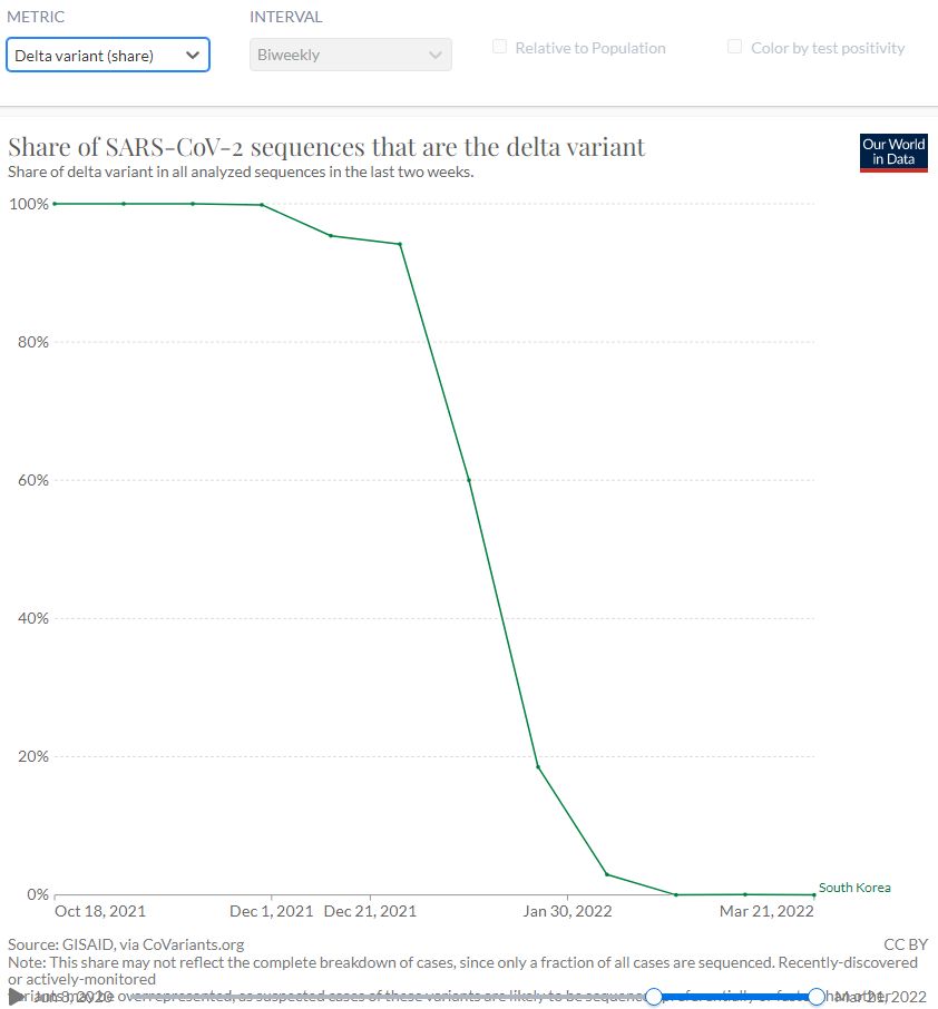 오미크론계열이 주된 변이가 되었고, 델타변이는 밀려났는지 어찌됐는지 없어졌습니다.4