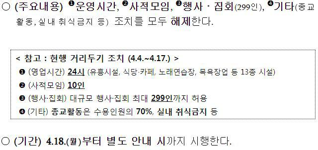 ㅡ 실내 취식금지는 4월 25일부터 해제.