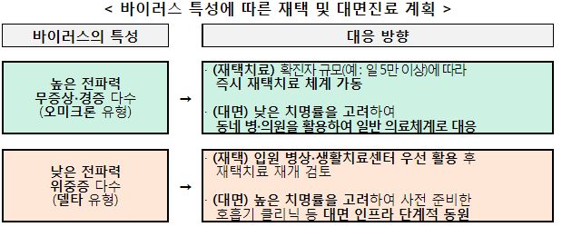 ㅡ 앞으로 코로나19(COVID-19)계열 바이러스 유행 행정대응은 알려진 특성에 따라 2종류로 나눠 하기로.