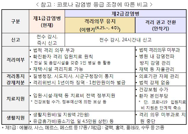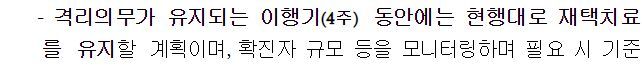 ㅡ 이행기를 4주 두고 이후(5월 중하순)에 격리의무(재택치료)도 풀 것.