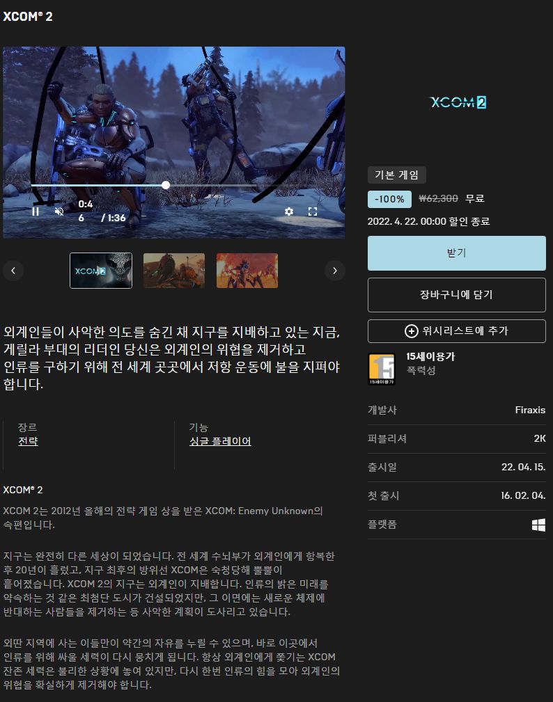 | (에픽게임스 무료게임) Insurmountable (0) | 2022.04.15 |
