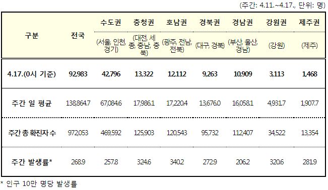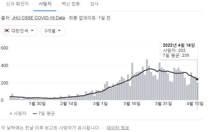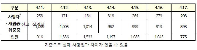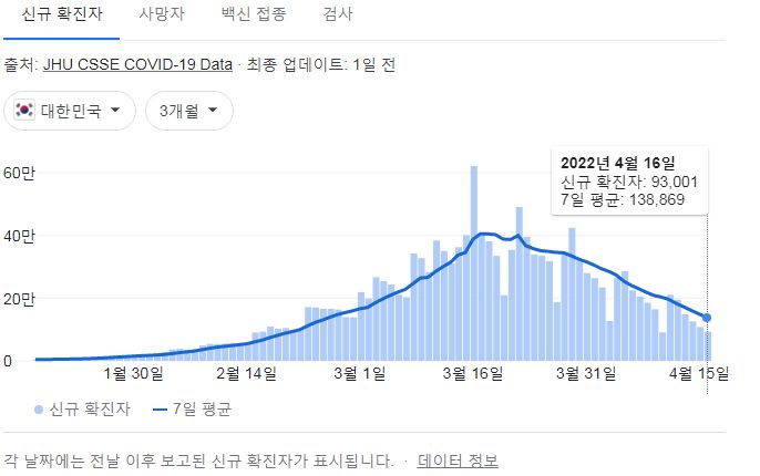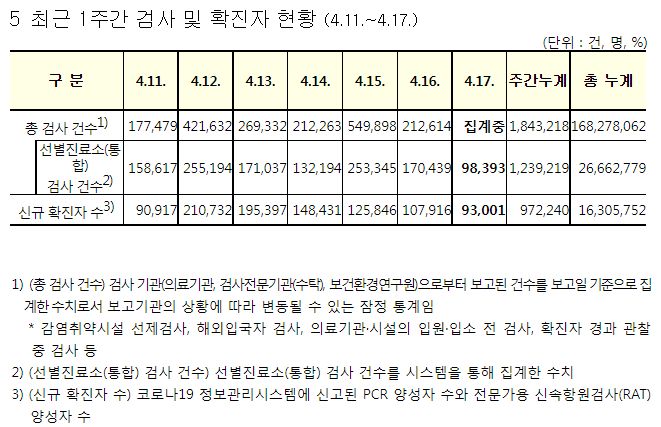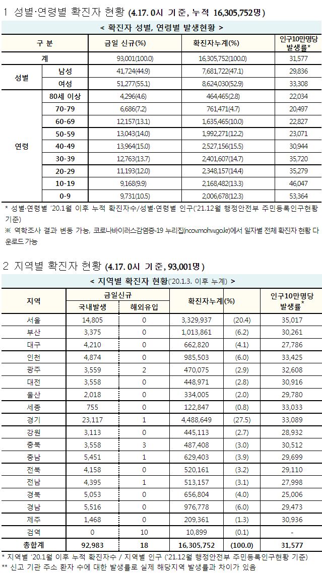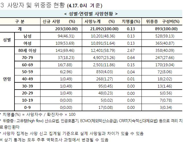 코로나19집계(2022.4.17): 확진 +9.3만, 사망 +203명, 중환자실가동률 47%, 재택치료 83만(집중관리 7.2만) 본문