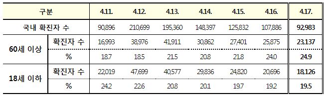 | 코로나19(2022.4.15) "사회적 거리두기 조치 약 2년 1개월만에 해제"보도자료/:/ 실내외 마스크착용은 계속 (0) | 2022.04.15 |
