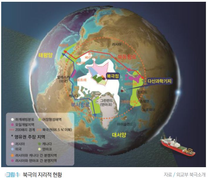 아래 그림은 북극해 개요. 외교부사이트가 출처라니 외교부에도 이쪽을 설명한 웹페이지가 있는 모양이군요.2
