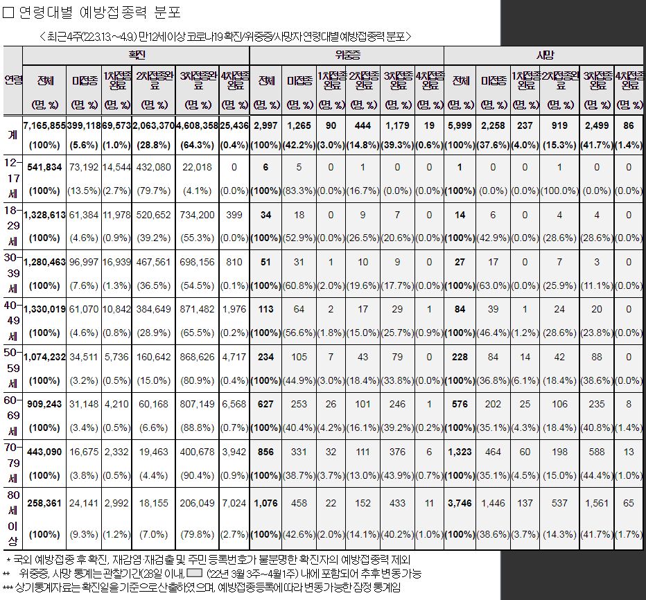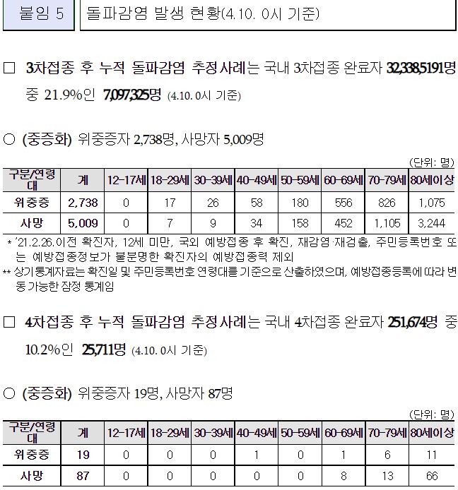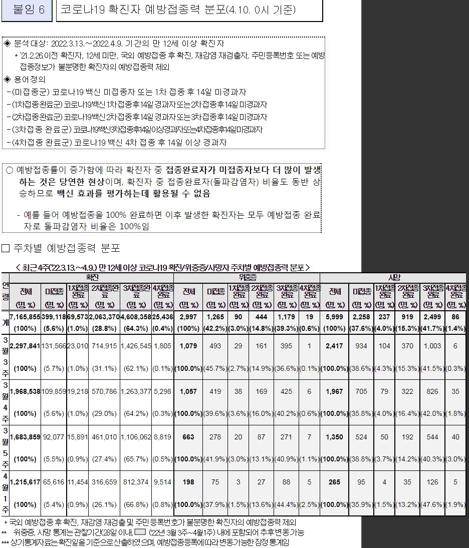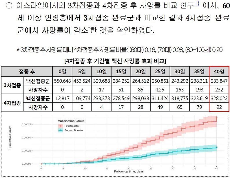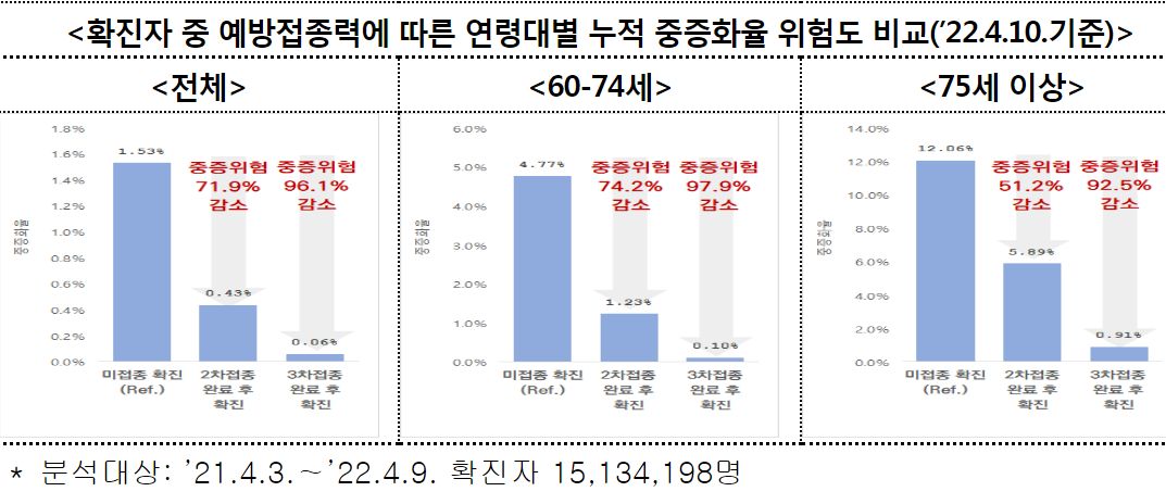 (2022. 4.22.) 국내 60대 이상 고령층에서 코로나19 2차접종자 대비 3차 접종자 감염, 위중증, 사망 예방효과 주요 결과 - 질병관리청 보도자료.