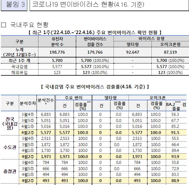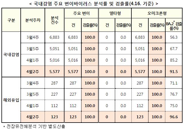 표본검사 오미크론검출률 50%인 날을 기점으로