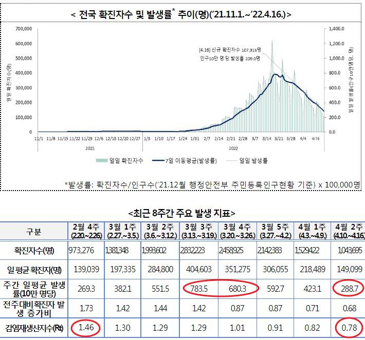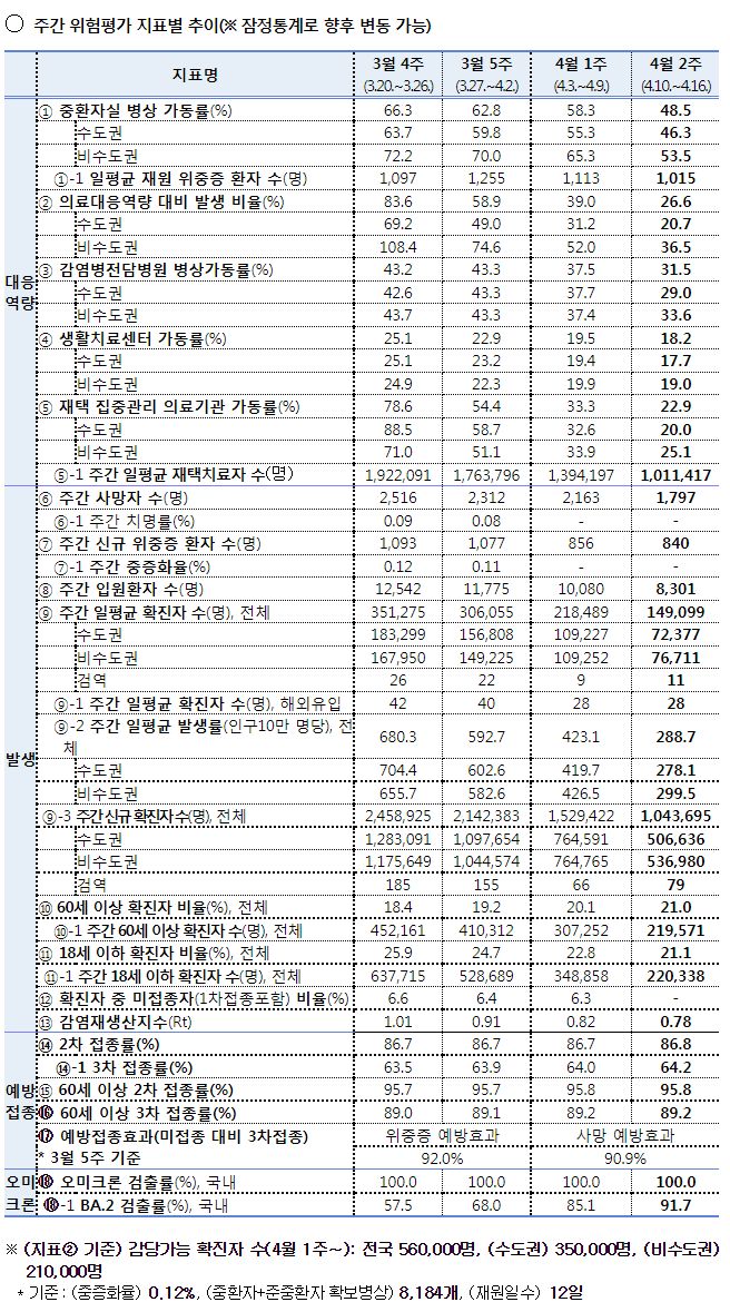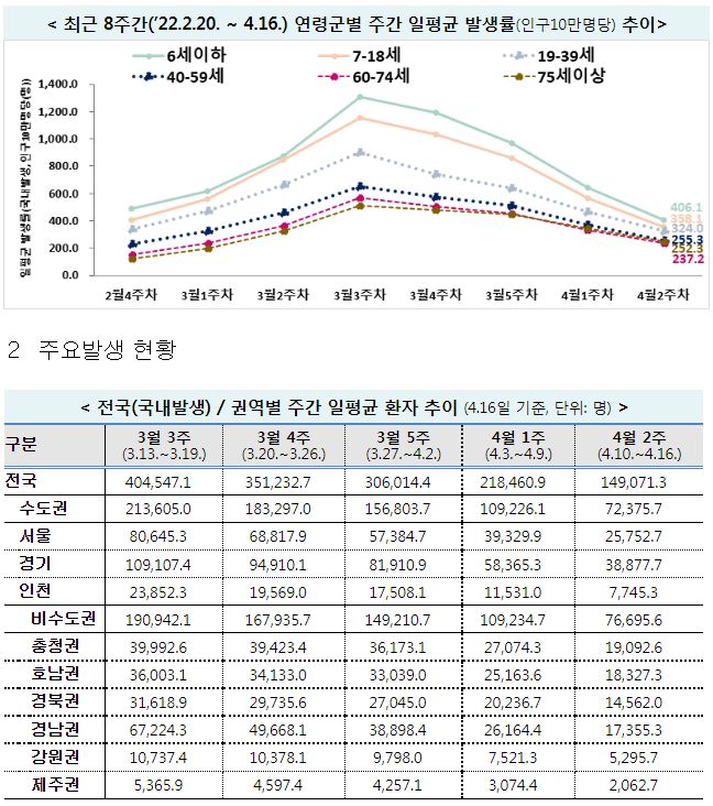 코로나19(2022.4.19) 주간 발생 동향 및 위험도 평가 - 질병관리청 브리핑 본문