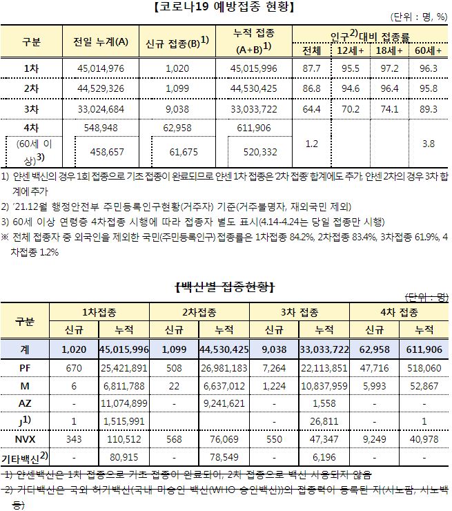 코로나19집계(2022.4.21): 확진 +9.1만, 사망 +147명, 중환자실가동률 41%, 재택치료 57만(집중관리 5.0만)/:/★노바백스 선택가능/:/★코로나19에 걸려본 사람의 백신권장기준 본문