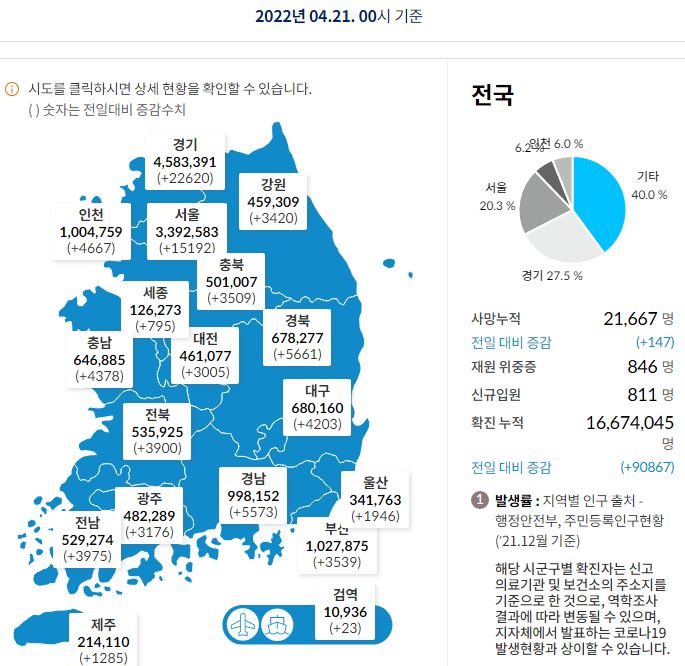 코로나19집계(2022.4.21): 확진 +9.1만, 사망 +147명, 중환자실가동률 41%, 재택치료 57만(집중관리 5.0만)/:/★노바백스 선택가능/:/★코로나19에 걸려본 사람의 백신권장기준