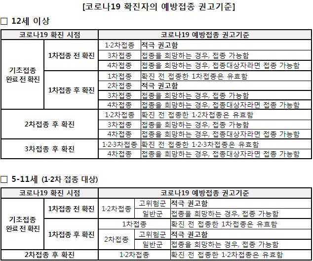 코로나19에 걸려본 사람의 예방접종 추가 권장기준