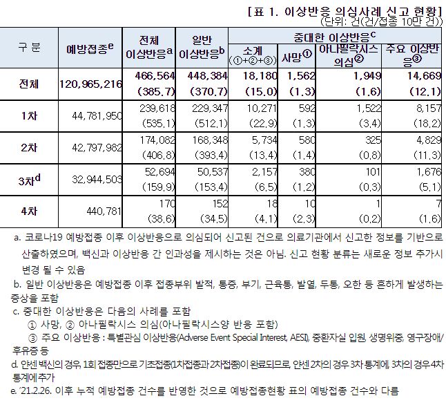 코로나19(2022.4.21) 이상반응 신고현황 주간 분석 결과(59주차)☆심의결과없음 본문