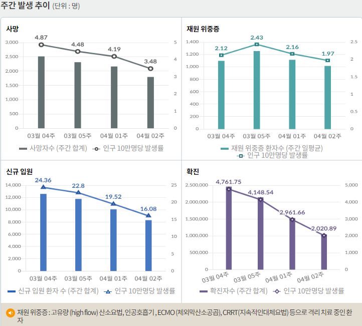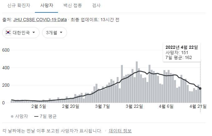 하지만 일일신규사망자수는 아직입니다. 위중증환자수가 7백명대로 떨어졌기 때문에 사망자도 감소할 것으로 당국은 예상하고 있습니다.