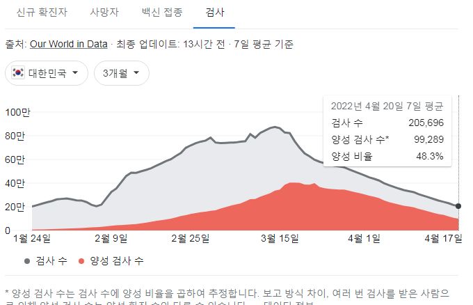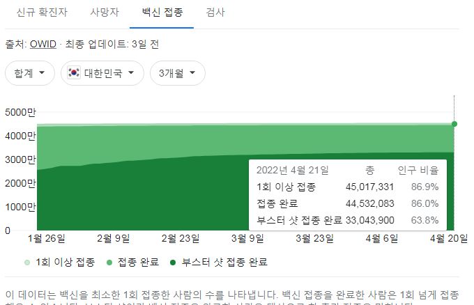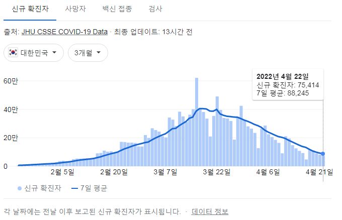 일일신규확진자는 지속적으로 감소 중입니다. 구글그래프로 뚜렷하게 모양이 잡혔습니다.
