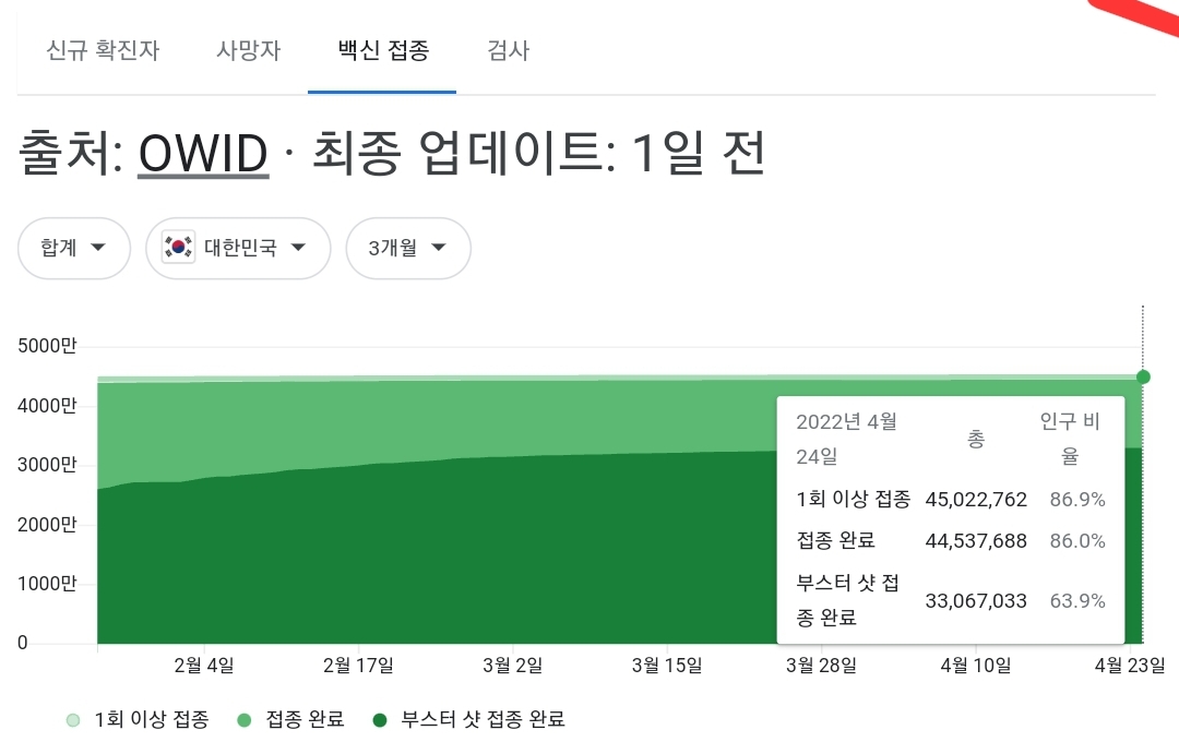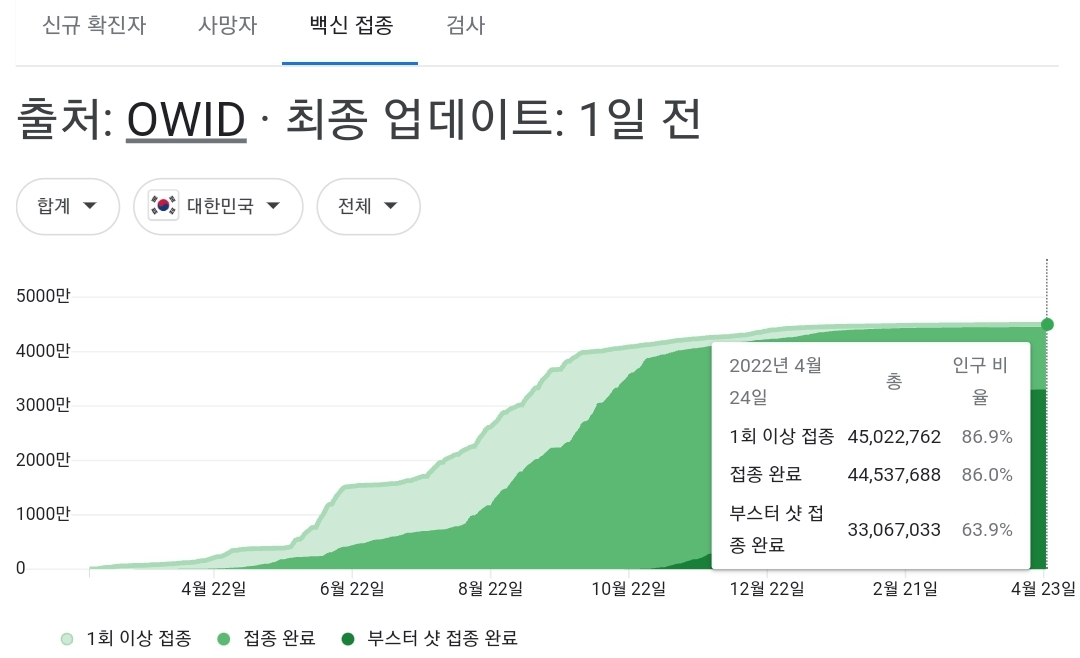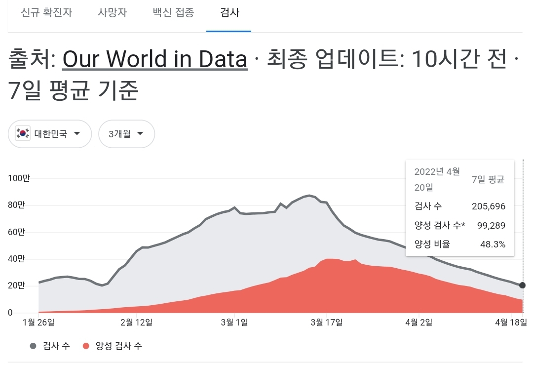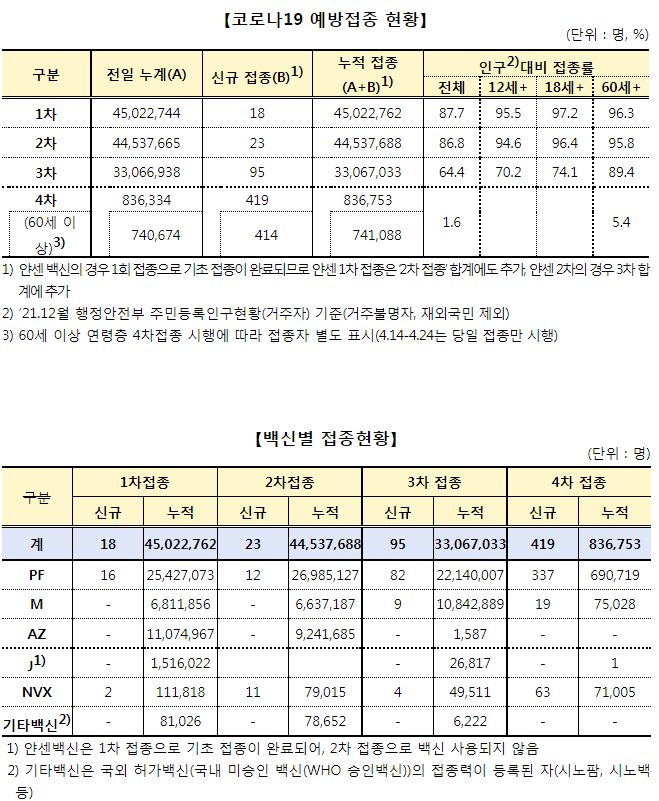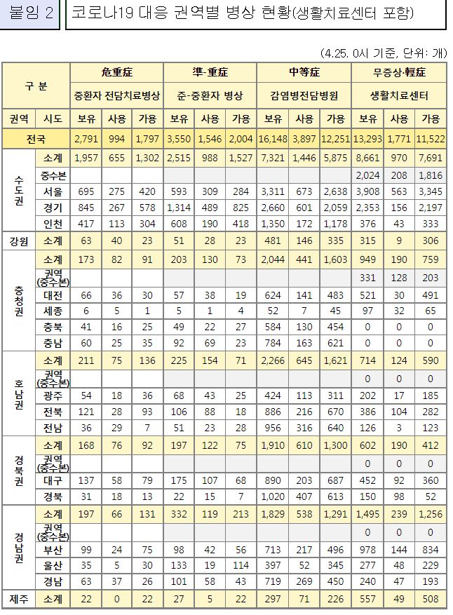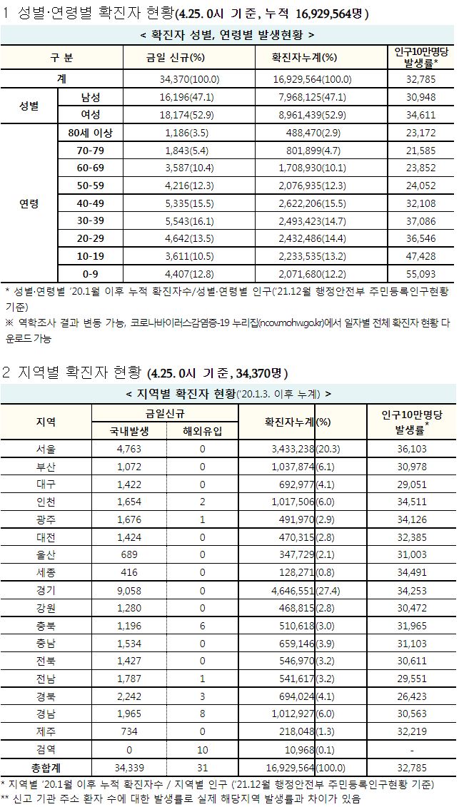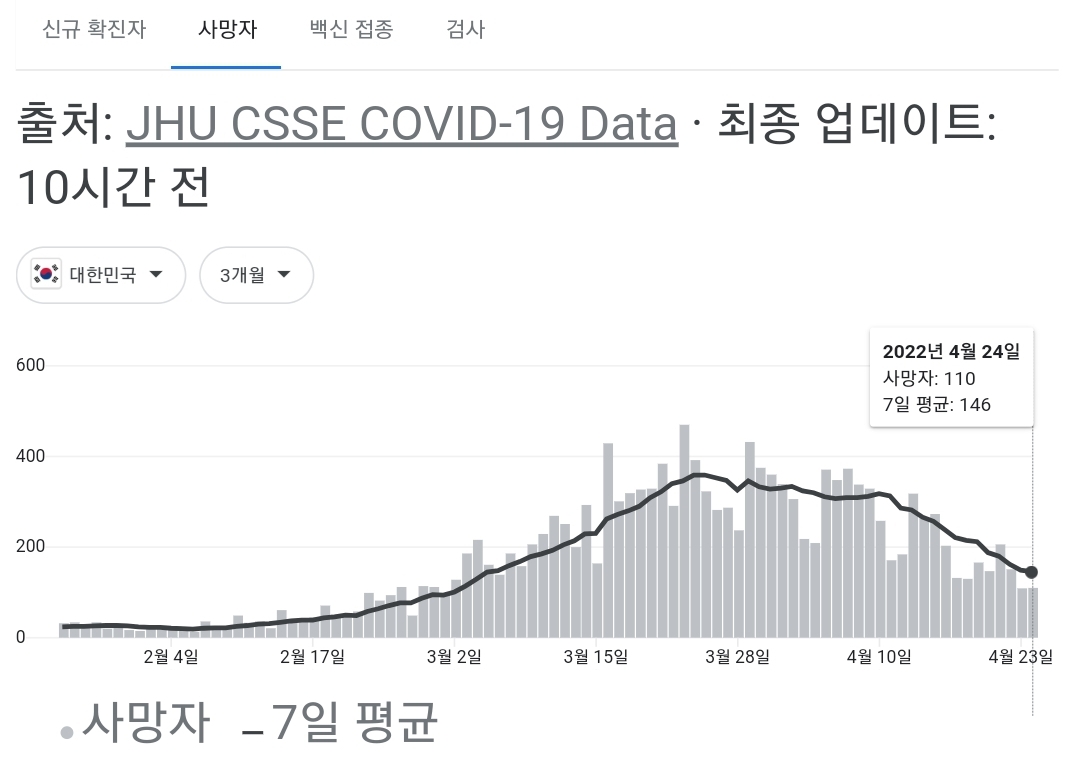 코로나19집계(2022.4.25. 0시기준): 확진 +3.4만, 사망 +110명, 중환자실가동률 36%, 재택치료 51만(집중관리 4.5만) 본문