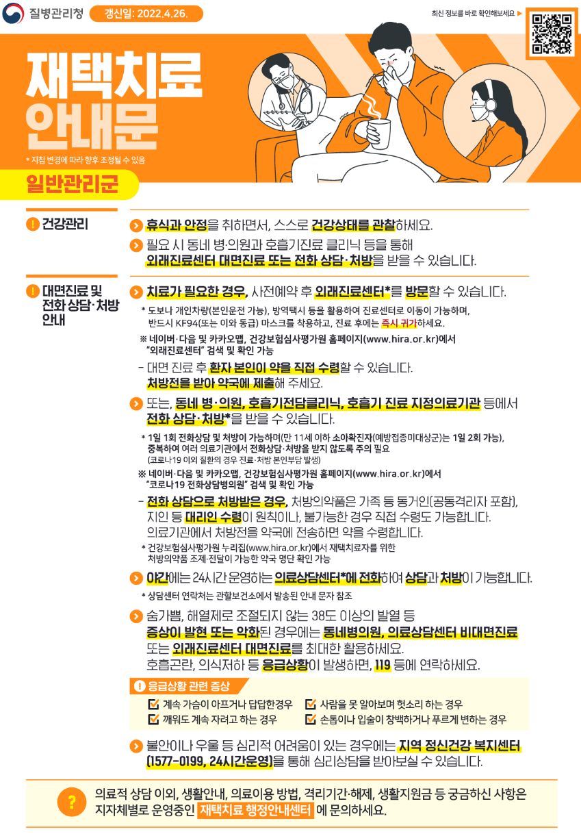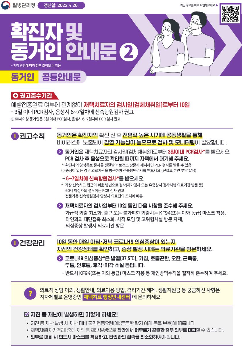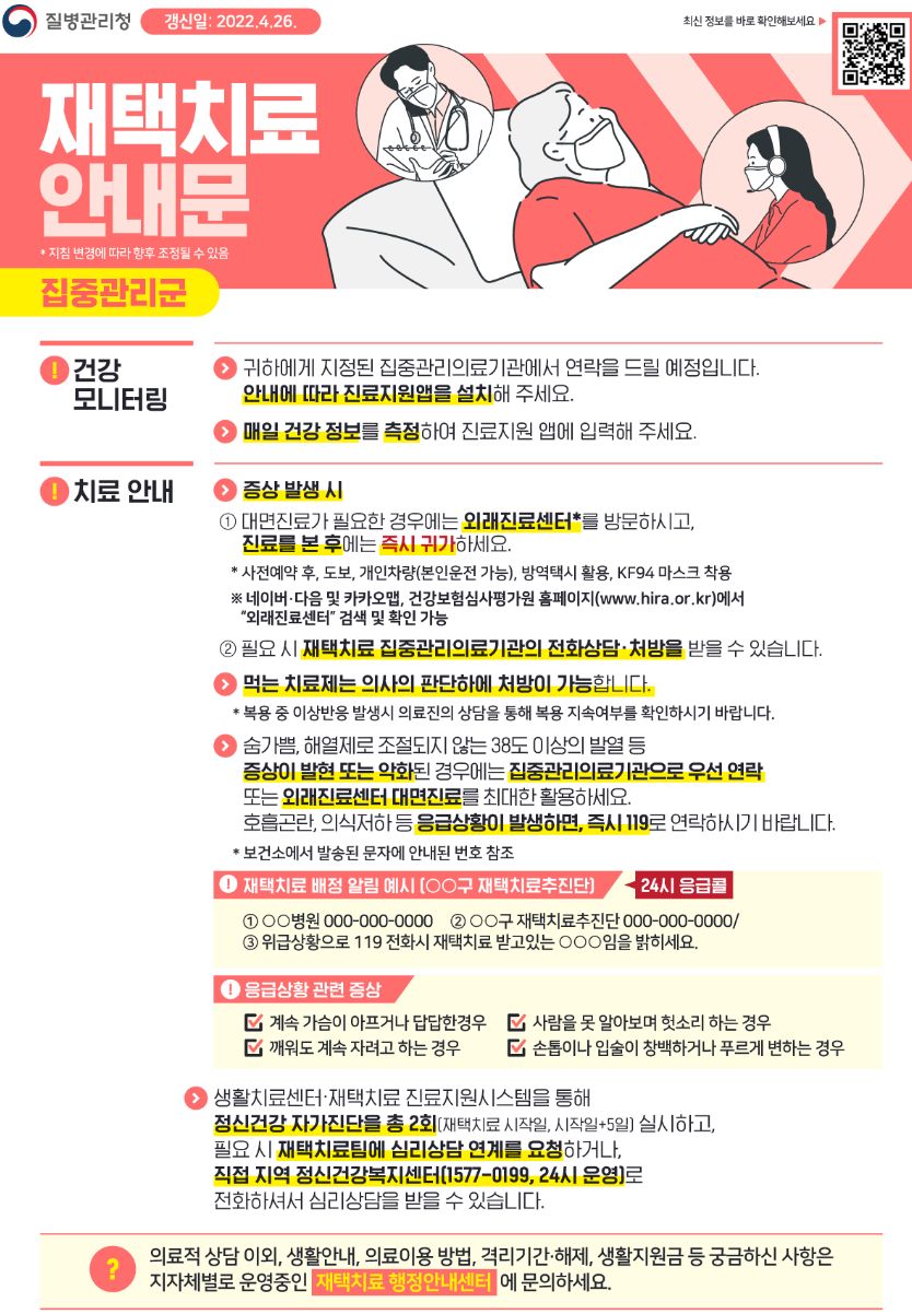 코로나19(2022.4.27 기준) 확진자 및 동거인 안내문, 재택치료안내문 등 갱신된 것 본문