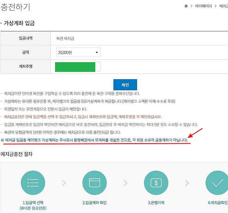 어느 온라인복권사이트의 계좌이체충전 및 예치금출금방식 본문