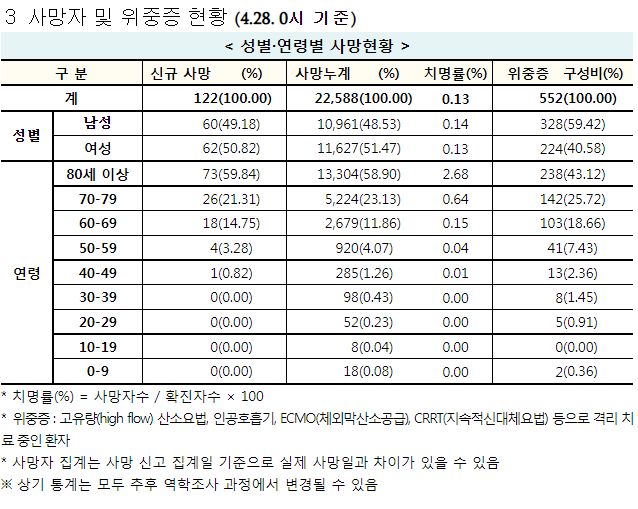 코로나19(2022.4.28. 0시기준): 확진 +5.7만, 사망 +122명, 중환자실 가동률 30.0%, 재택치료 42만(집중관리 3.7만)/:/ 팍스로비드 효과가 좋다는 질병청 조사결과