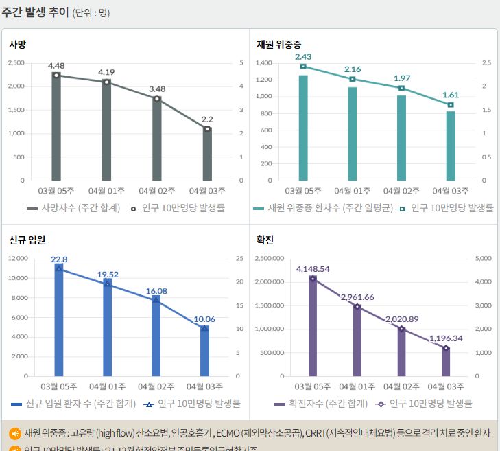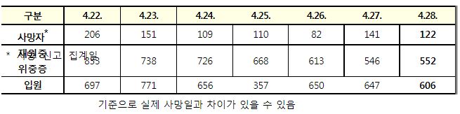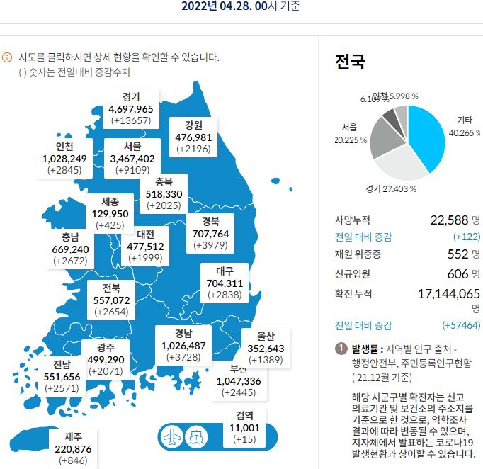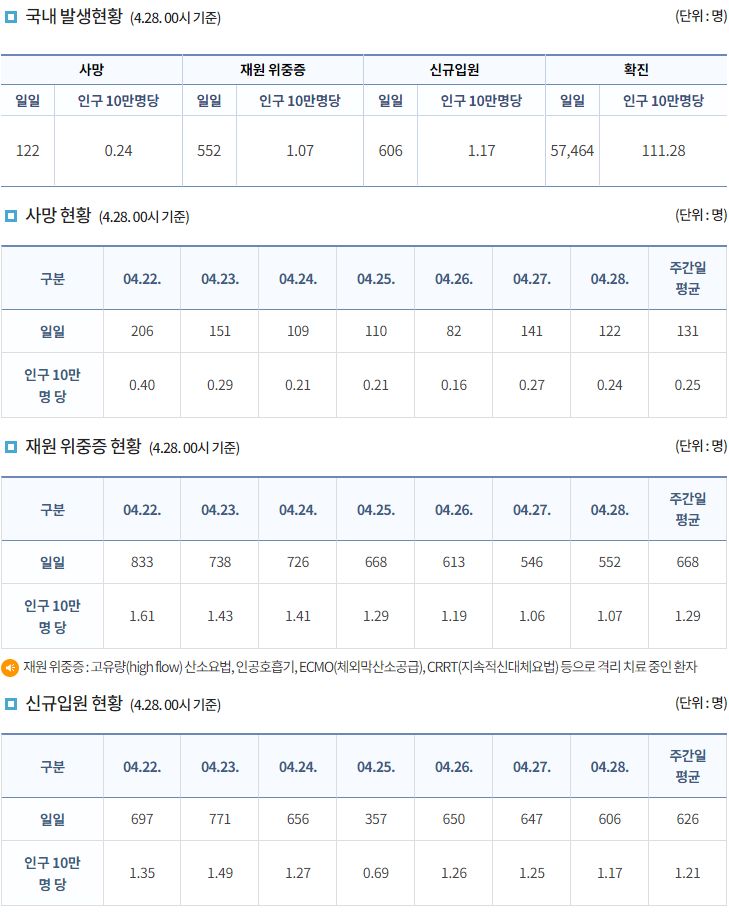 코로나19(2022.4.28. 0시기준): 확진 +5.7만, 사망 +122명, 중환자실 가동률 30.0%, 재택치료 42만(집중관리 3.7만)/:/ 팍스로비드 효과가 좋다는 질병청 조사결과 본문