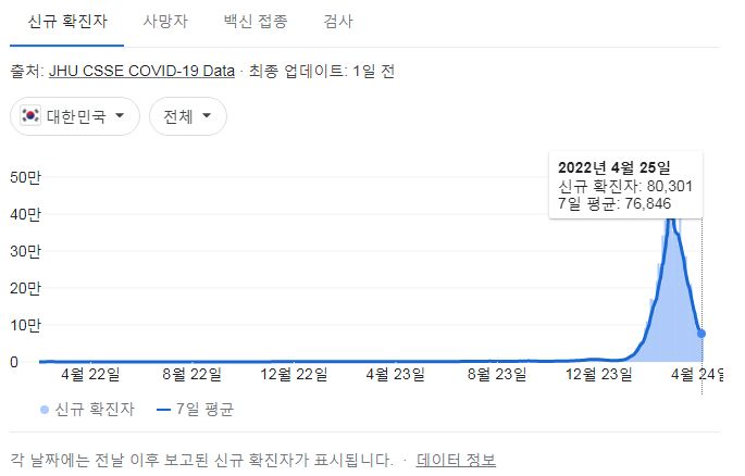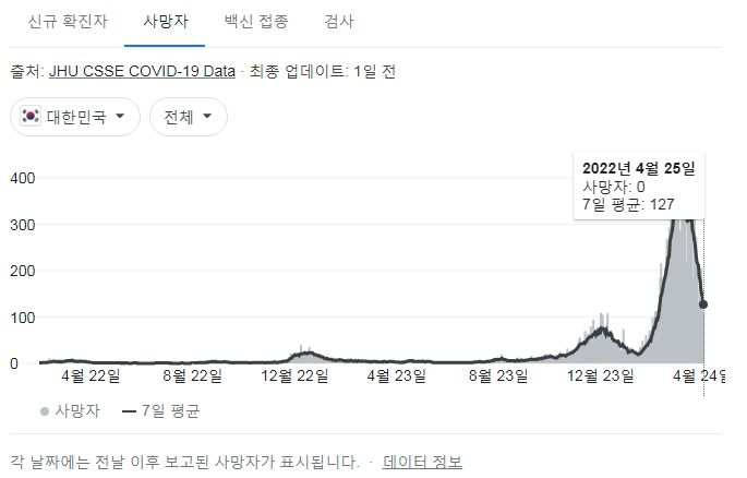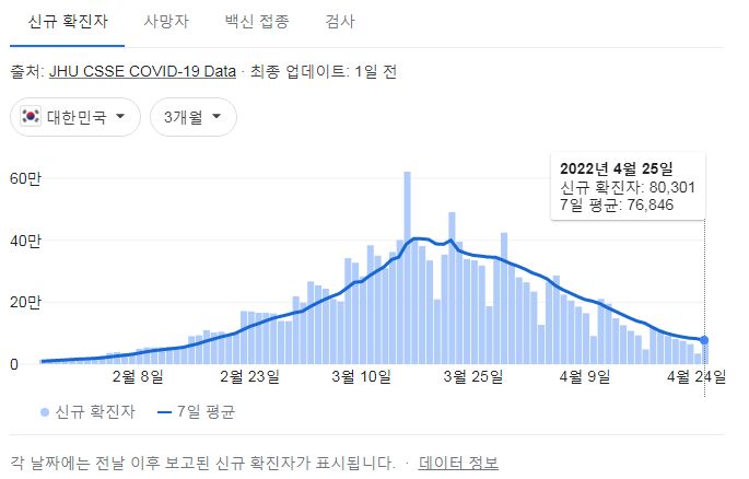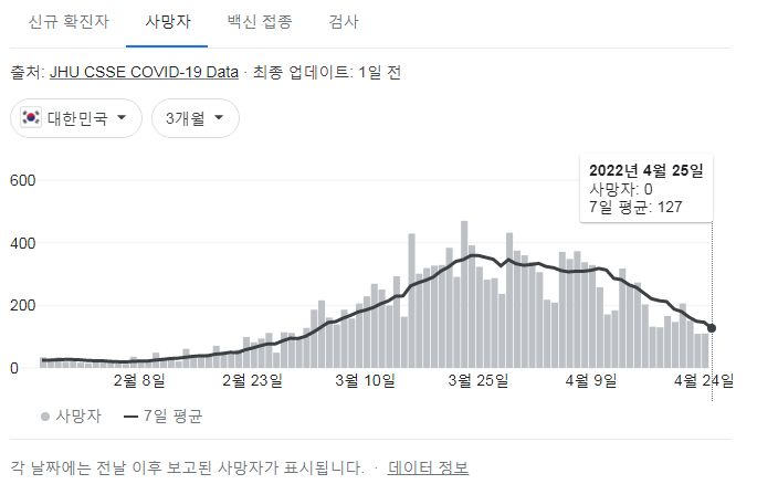 *정부가 자료를 안 준 것인지 그쪽에서 갱신을 안 하는 것인지 모르겠지만, 구글그래프는 한국시간 화요일치에서 멎어 있습니다.
