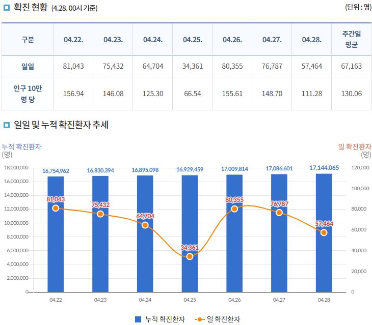 코로나19(2022.4.28. 0시기준): 확진 +5.7만, 사망 +122명, 중환자실 가동률 30.0%, 재택치료 42만(집중관리 3.7만)/:/ 팍스로비드 효과가 좋다는 질병청 조사결과 본문