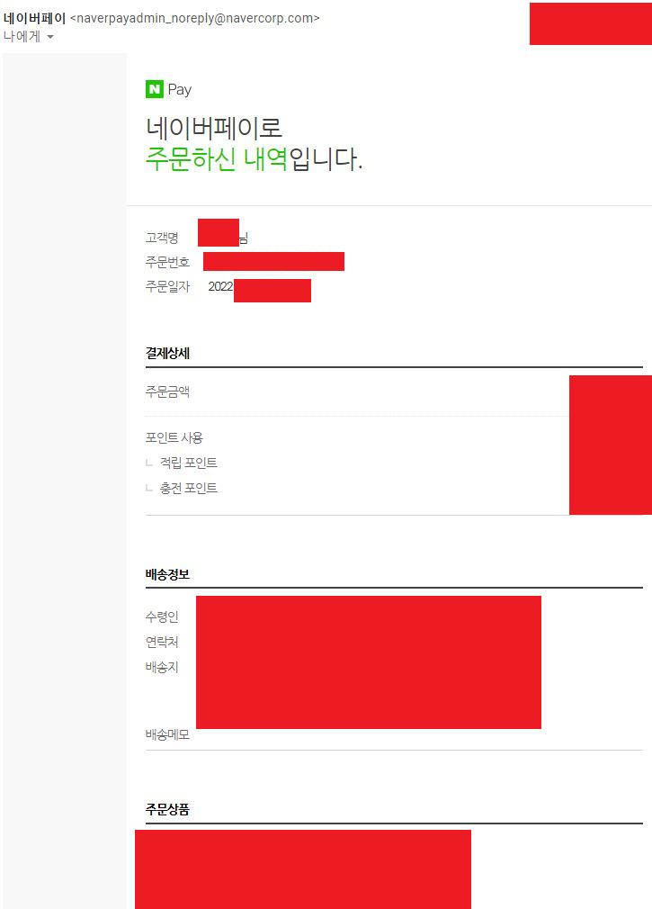 네이버 페이 결제를 사칭한 스팸메일 본문