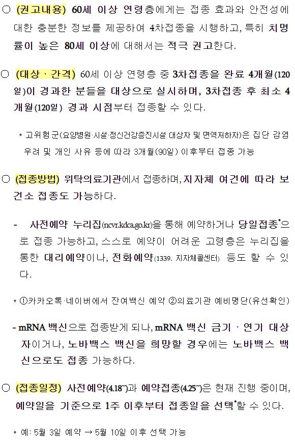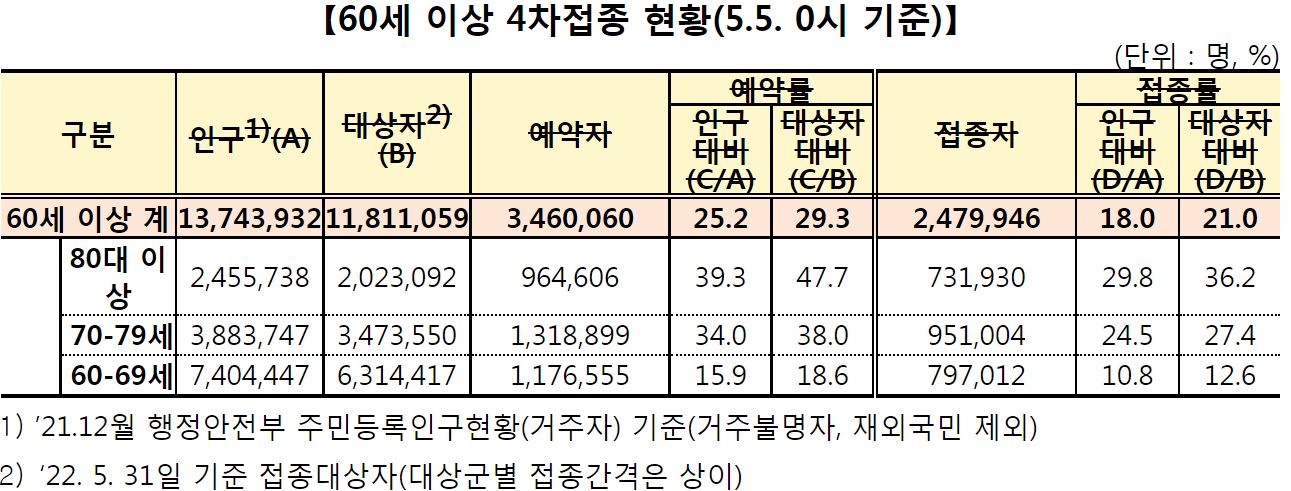 코로나19: 60세 이상 연령층 4차접종 현황 - 질병관리청 보도자료 본문