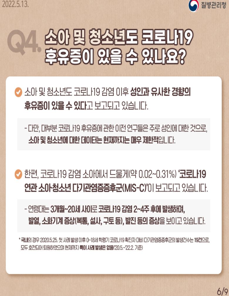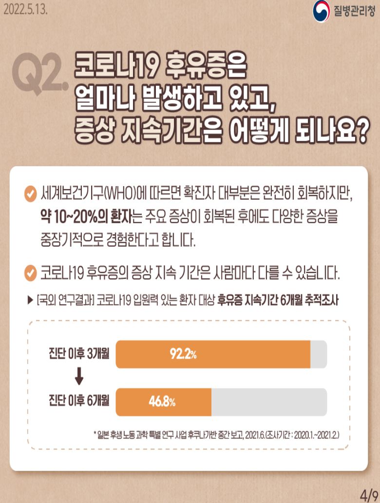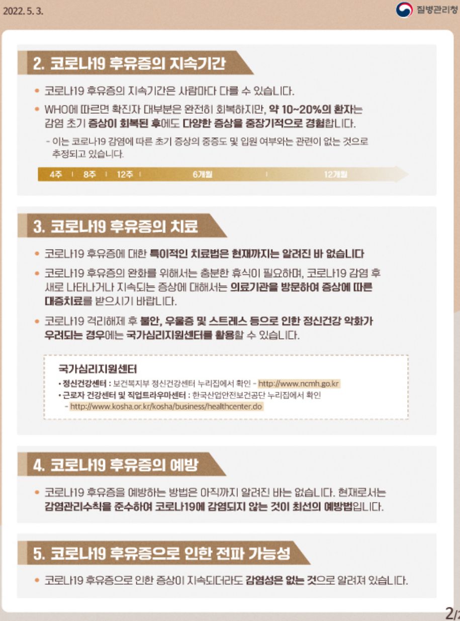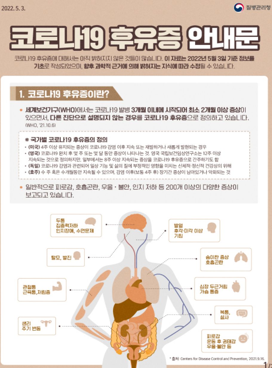 코로나19(2022.5.3) 후유증의 정의 (질병관리청) 및 설명 본문