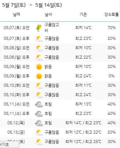 다음 주는 주중에 또 최저기온은 10도 정도까지 가는데, 낮최고기온은 20도대 중반이고