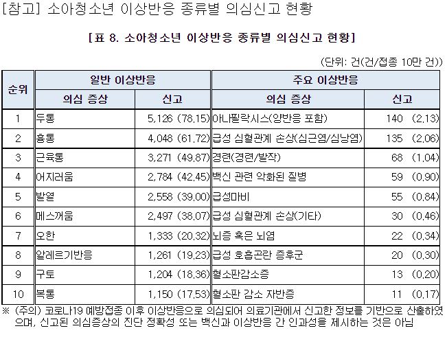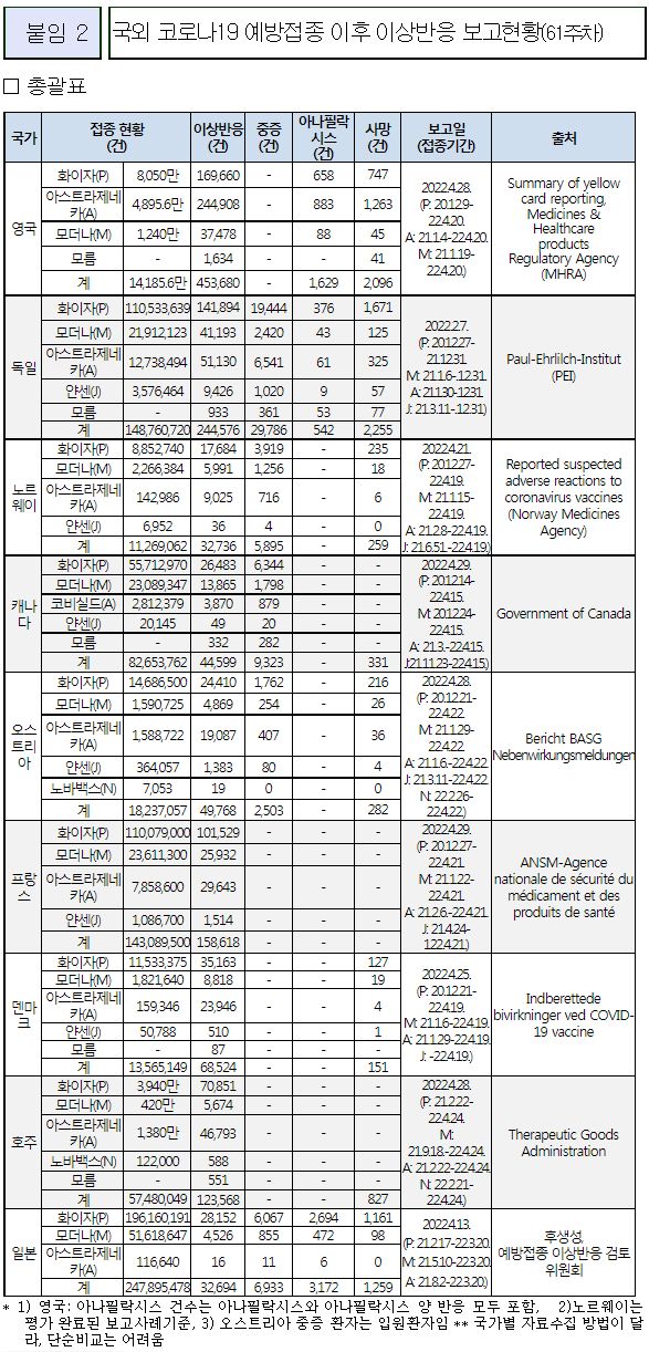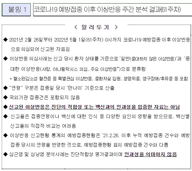 코로나19(2022.5.5) 이상반응 신고현황 주간 분석 결과(61주차) 본문