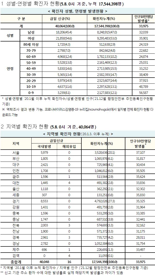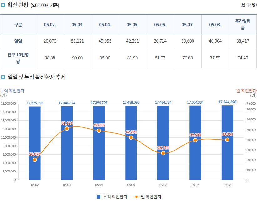 코로나19집계(2022.5.8. 0시기준): 확진 +4만, 사망 +71명, 위중증환자실가동률 20%, 재택치료 25만(집중관리 2.0만) 본문