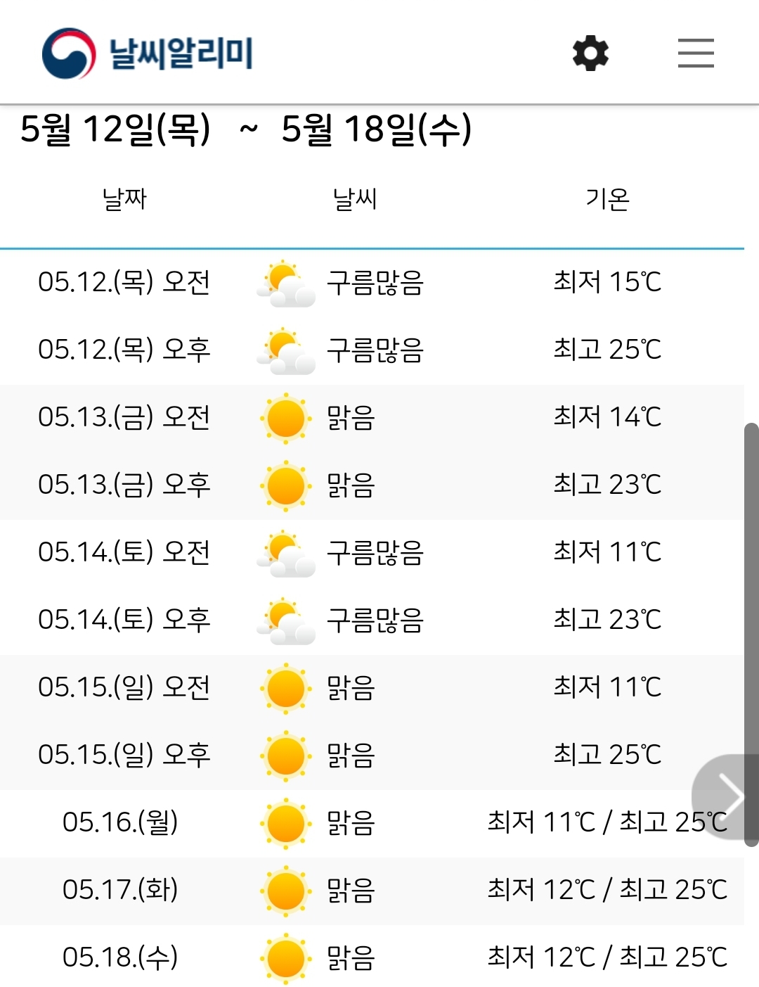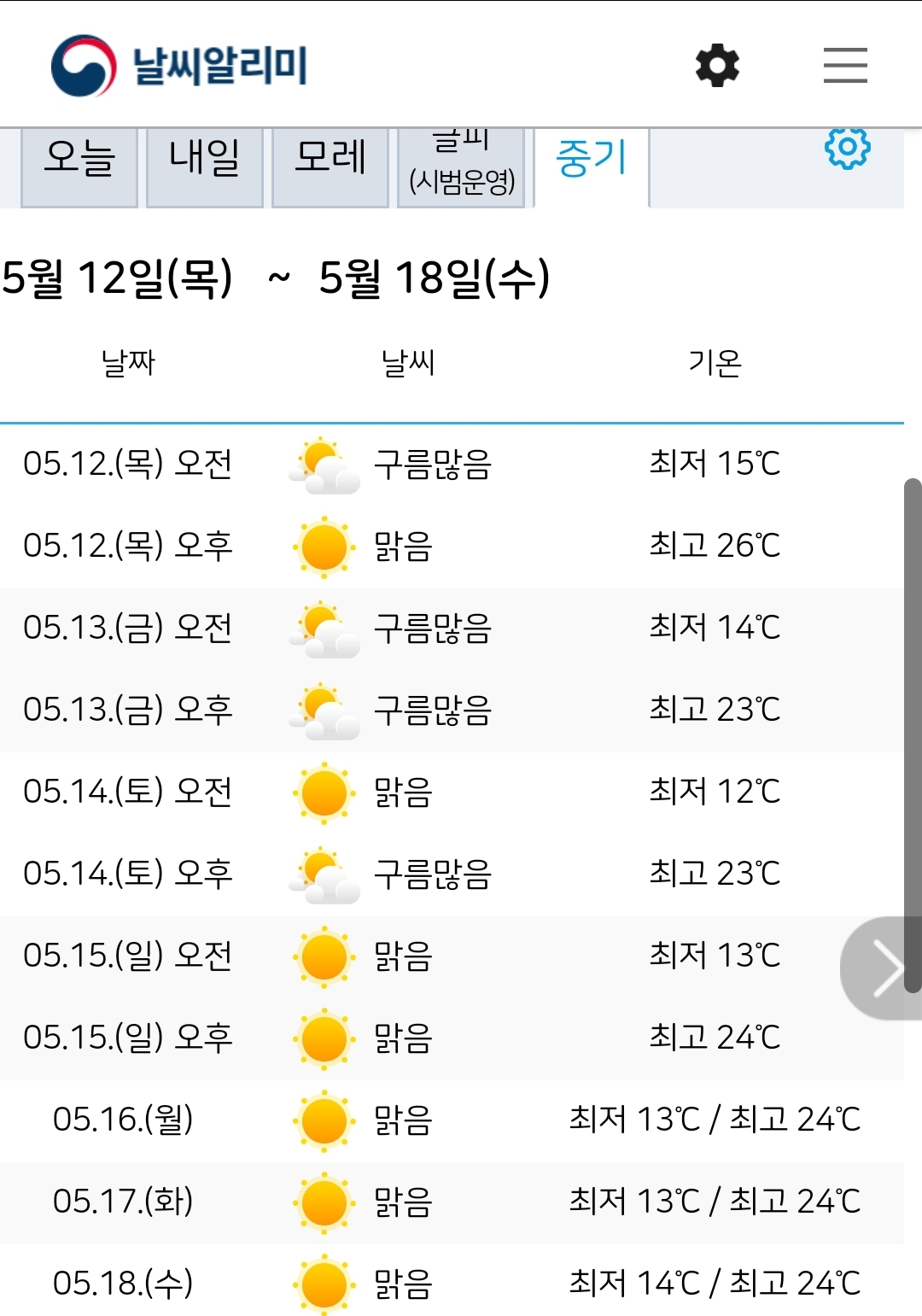 대전 중기예보