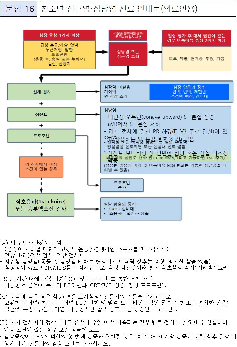 청소년 심근염, 심낭염 진료 안내문(의료인용)