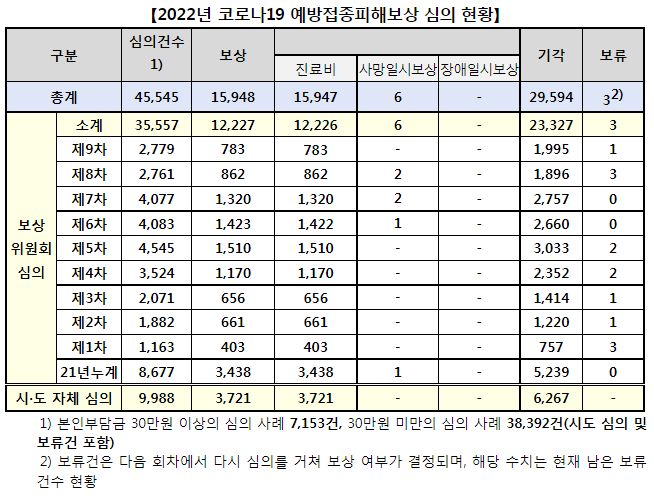 코로나19(2022.5.12) 예방접종 이후 이상반응 주간 분석 결과(62주차)/:/ 2022년 9차까지의 코로나19 예방접종피해보상 심의 현황 본문