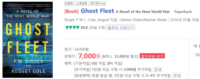 버락 오바마정부동안 중국은 베트남-필리핀-말레이시아-인도네시아 사이에 자리한 동남아시아 섬들과 바다 전체를 강점했고, 자국만이 독점하는 영토, 영해라 주장하면서 각국의 해상통행을 훈수두기 시작했습니다. 그리고 미국은 태평양으로의 귀환을 선언했죠. 그 분위기를 타고 크게 읽힌 소설.