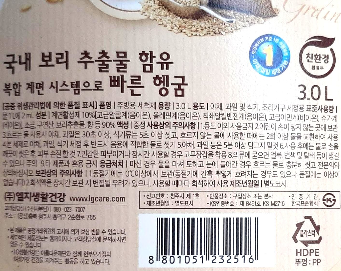 LG생활건강 퐁퐁 아침보리 3L (주방세제) 제품정보 본문