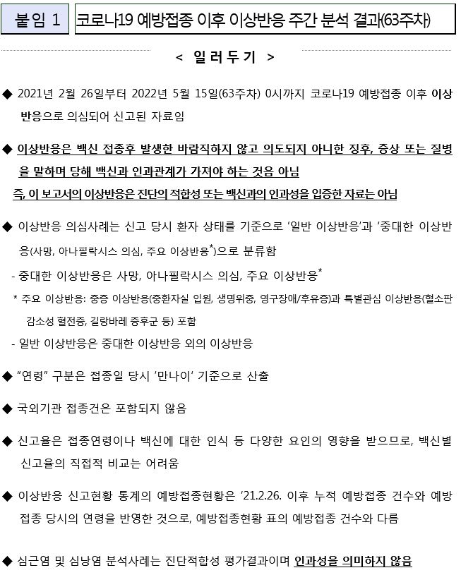 코로나19(2022.5.19) 이상반응 신고현황 주간 분석 결과(63주차)/:/ 고령층 예방접종 통계 본문