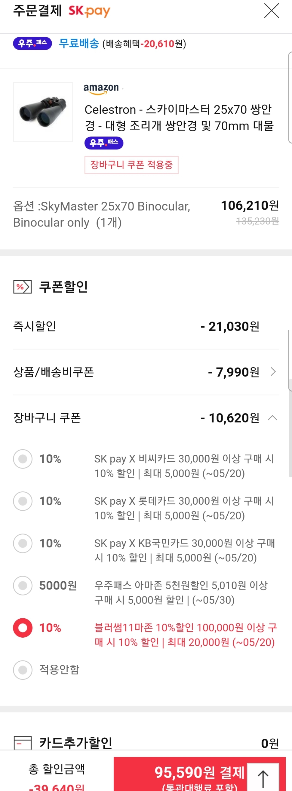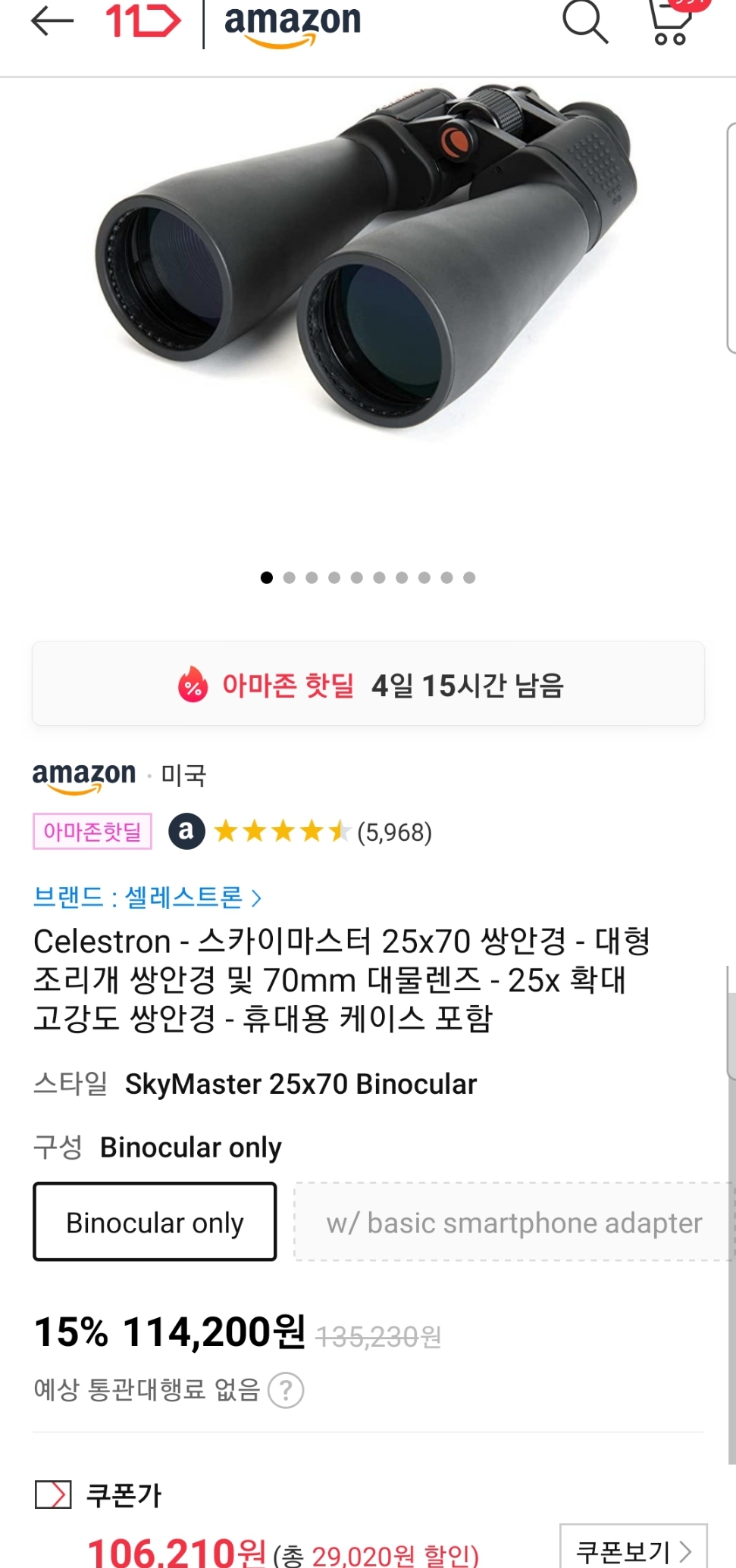 (11번가-아마존) 셀레스트론 25x70 쌍안경 (~9.6만원) 본문