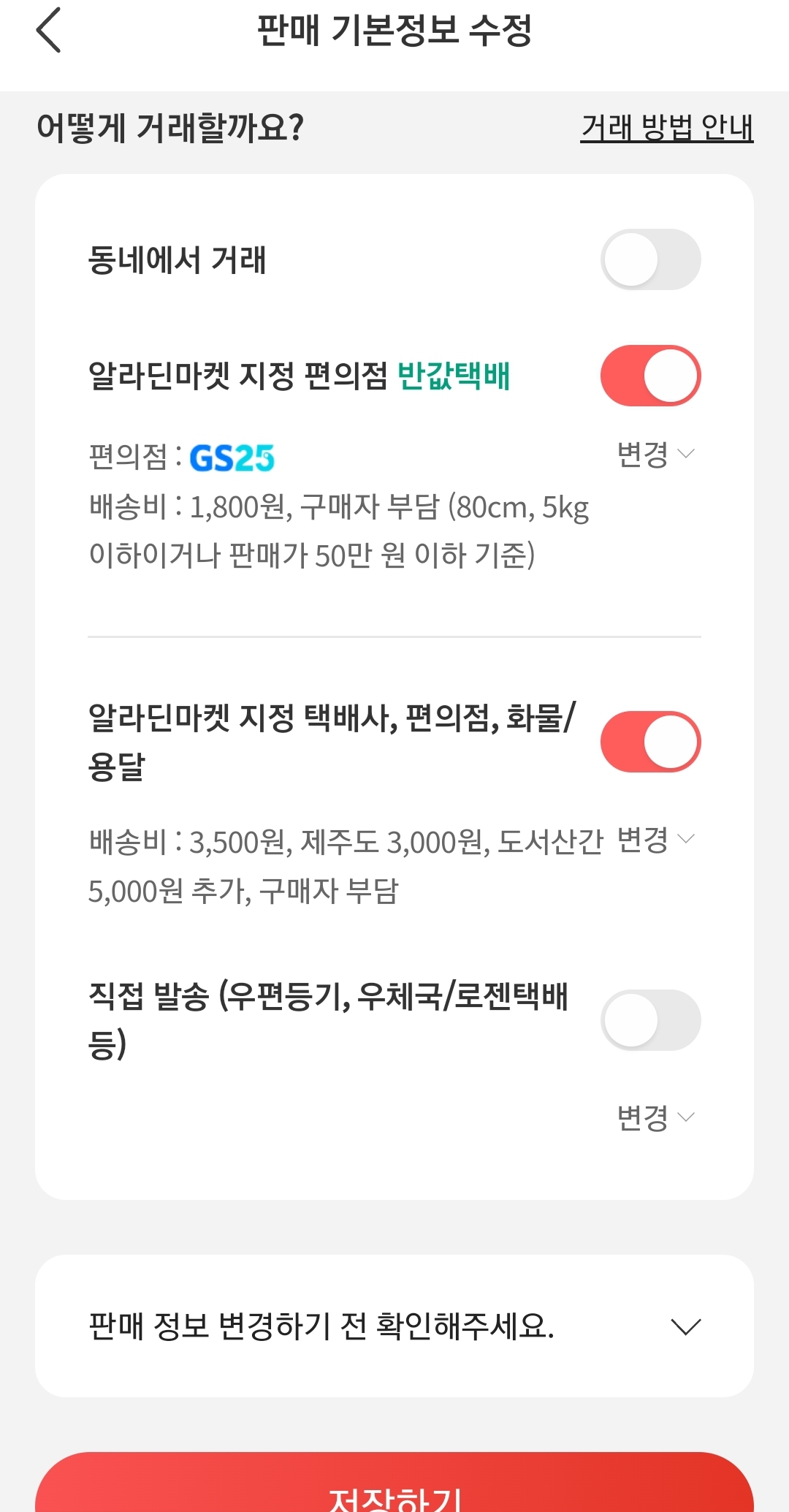 어쨌든, 알라딘마켓에 있는 배송방법:
