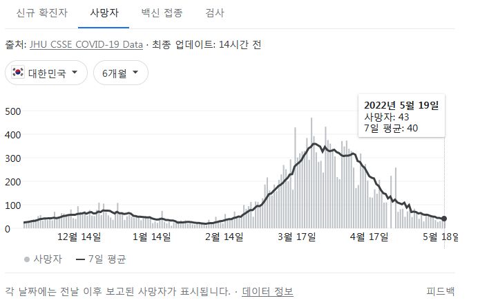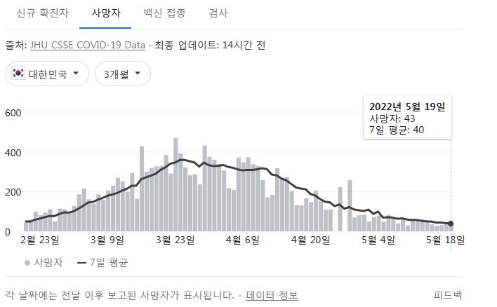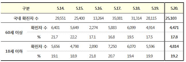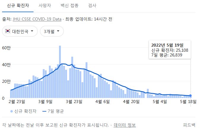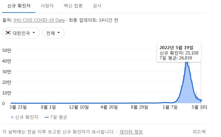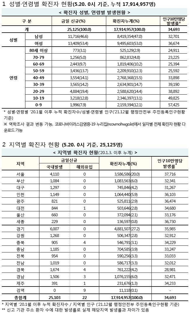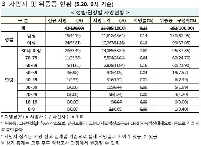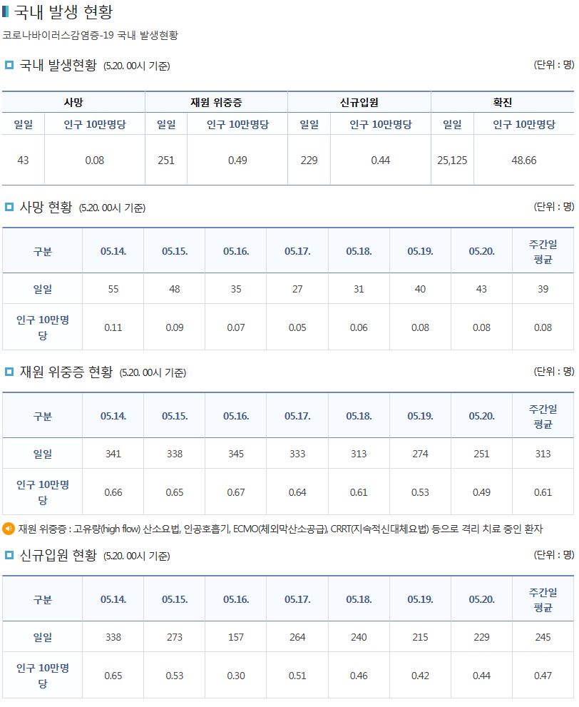 코로나19집계(2022.5.20. 0시기준): 확진 +2.5만, 사망 +43명, 위중증병상가동률 16%, 재택치료 17만(집중관리 1.1만) 본문