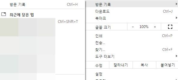 그럼 모든 창과 탭이 없는 상태에서 옛날에 열어본 걸 다시 열어보고 싶다면?