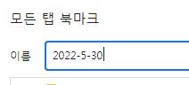첫 북마크는 이렇게 만들고, 그 다음부터 저장할 것들은 그냥 기본값대로 방치해도 됩니다. 물론, 주제별로 창 하나에 열어놓은 것들은 그 주제의 이름을 적어주면 나중에 편하죠. 단, 두 번째 이후의 저장폴더는 맨 처음에 만든 폴더 즉 저기서는 2022-5-30 안에 서브폴더로 저장되도록 클릭해줍니다. 그럼 나중에 찾기 쉽습니다.