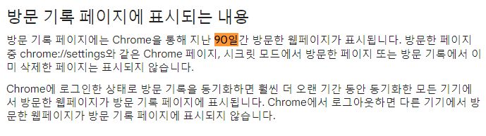 그리고 구글 크롬 웹브라우저의, 유저가 볼 수 있는 "방문기록"유지기간은 약 3개월이라고 하더군요.