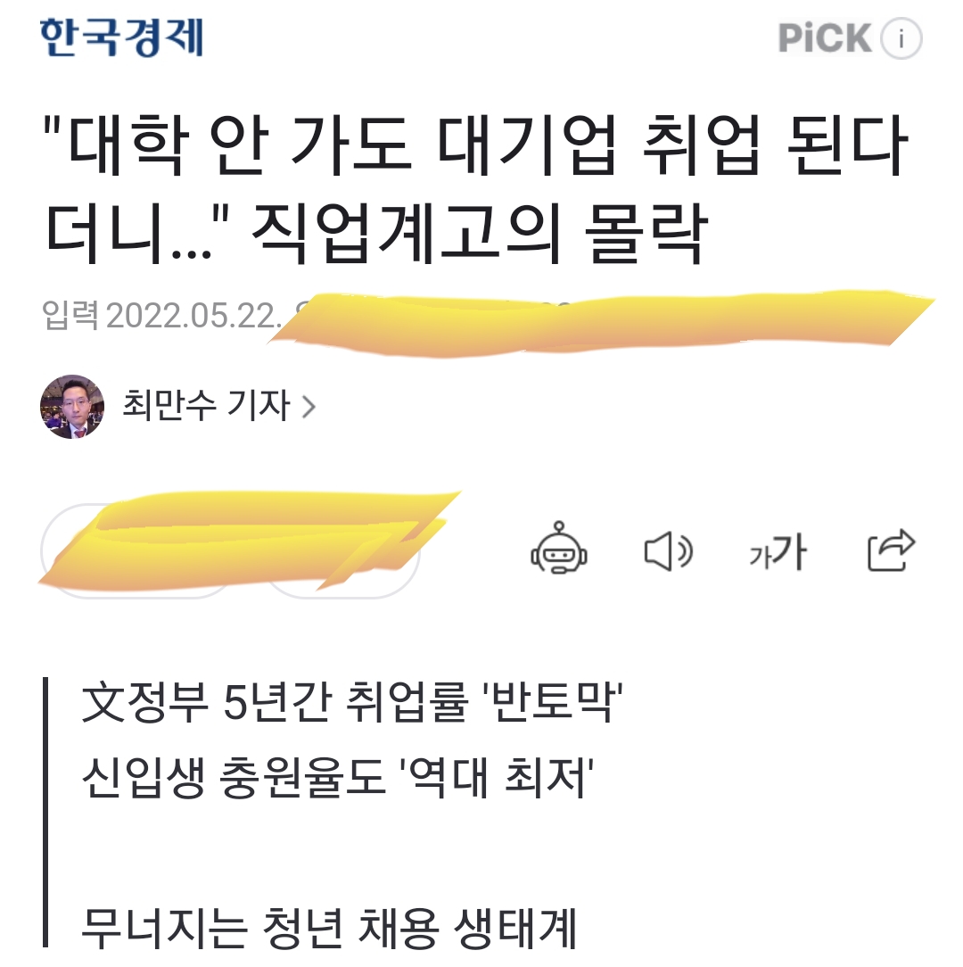 자기 자식은 '아빠찬스'쓰게 하고, 남의 자식만 대학가지 말라고 해서는 안 되는 거죠. 안 가도 되게 하려면 그래도 취업이 되도록 짜줘야지, 그게 아니었다는 이야기. 안전하게 현장실습하도록 정책을 만들지는 않고, 그냥 현장실습을 폐지하는 규제만 더해서 망쳐버렸다는 기사.