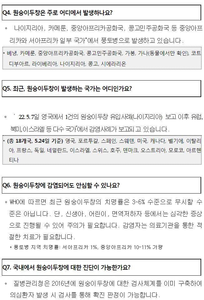 질병관리청 2022.5.26. 원숭이두창 관련 정보