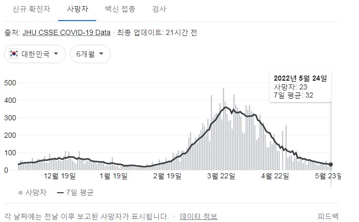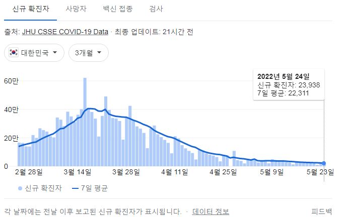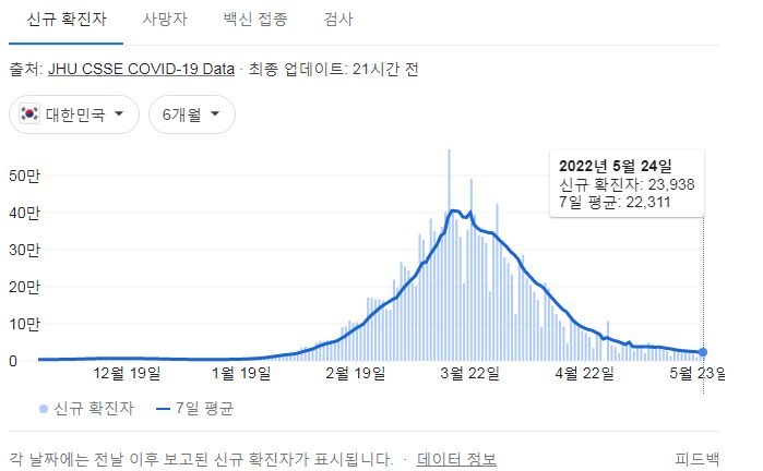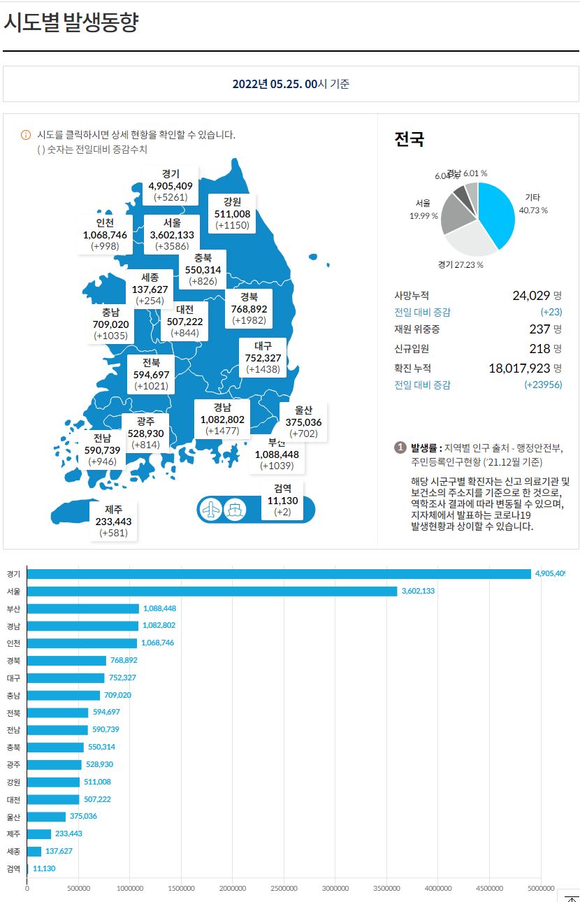 코로나19(2022.5.25. 0시기준): 확진 +2.4만, 사망 +23명, 위중증병상가동률 16%, 재택치료 14만(집중관리 9천)/:/ 이동량추이분석 본문